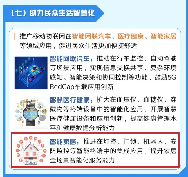 《通知》提出,到2027年,基于4G(含LTE-Cat1,即速率类别1的4G网络)和5G(含NB-IoT,窄带物联网;RedCap,轻量化)高低搭配、泛在智联、安全可靠的移动物联网综合生态体系进一步完善。(《通知》详细内容请点击文末阅读原文。)